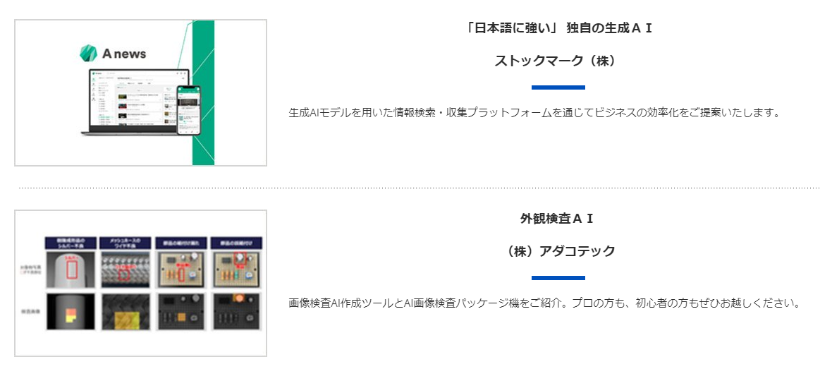 今話題の 「生成AⅠ」 などの出展製品の一部をご紹介、会場ではデモを見ることもできる。