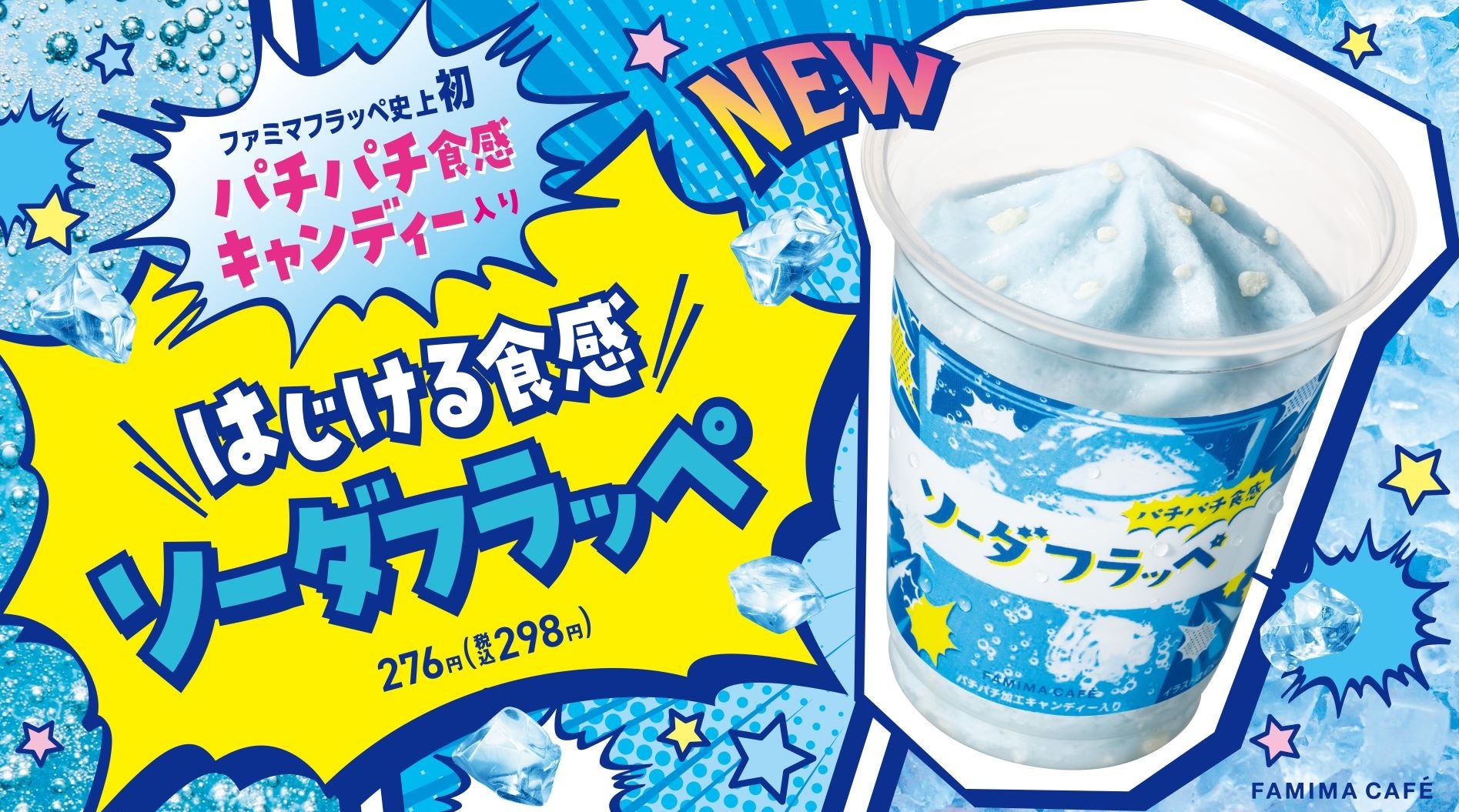 ファミマフラッペ史上初!パチパチ食感のキャンディーではじける美味しさ!「ソーダフラッペ」が8月6日(火)新発売!~3週間連続!金曜日限定でフラッペ100円引きセールも開催~