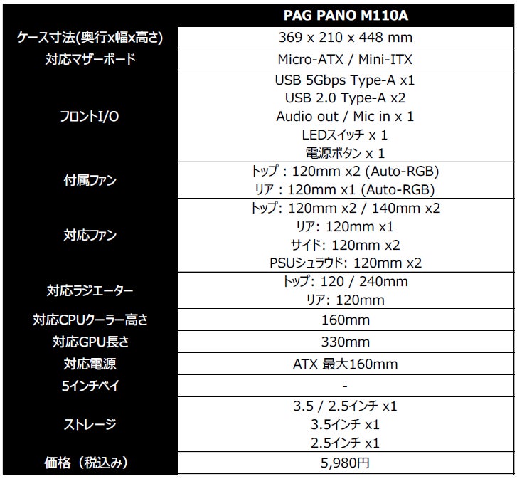 ■製品URL:https://jp.msi.com/PC-Case/PAG-PANO-M110A