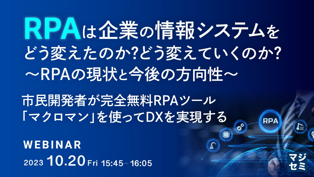 『RPAは企業の情報システムをどう変えたのか?どう変えていくのか?~RPAの現状と今後の方向性~ 市民開発者が完全無料RPAツール「マクロマン」を使ってDXを実現する』というテーマのウェビナーを開催