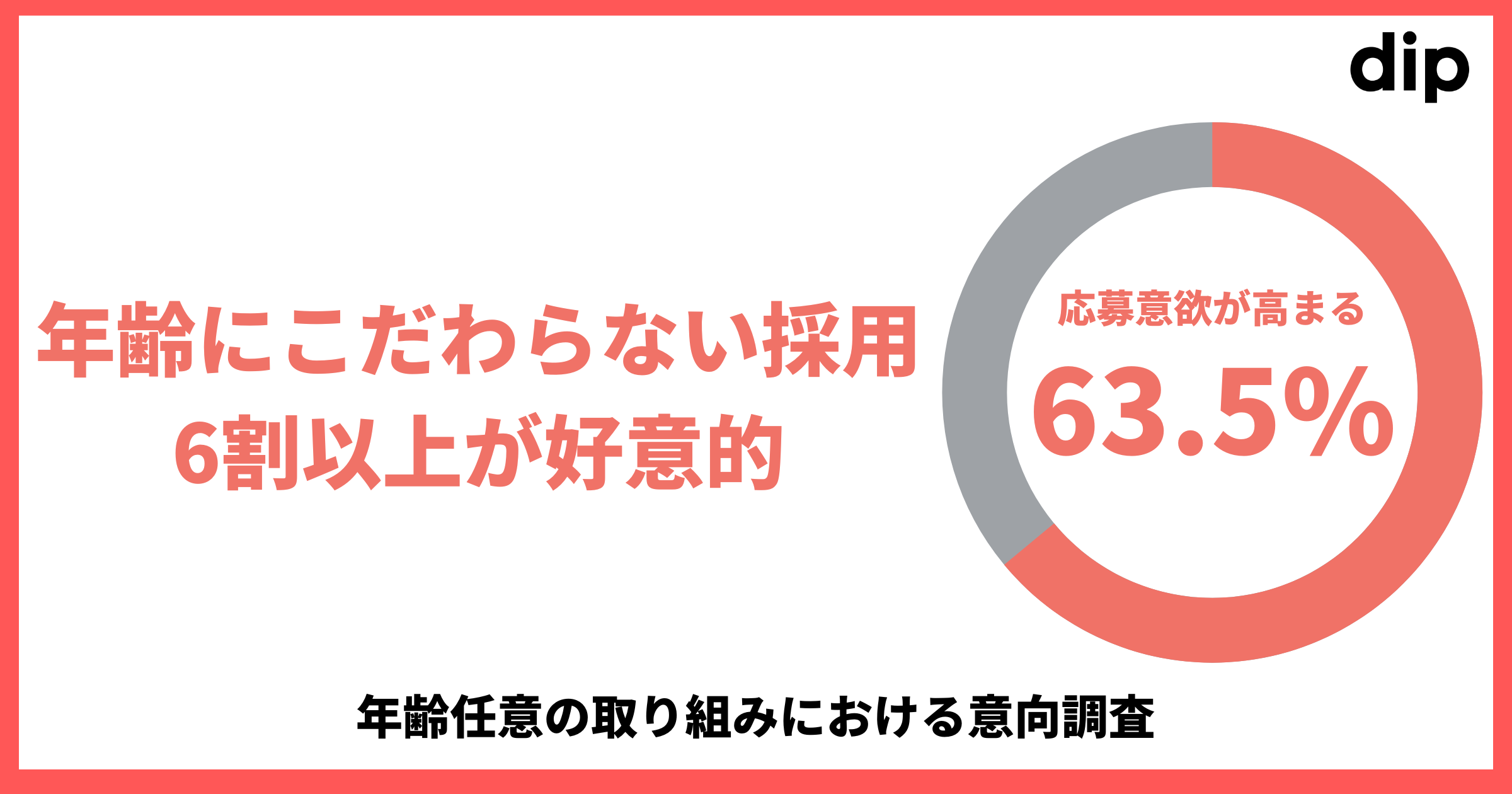 本調査によれば、「『年齢にこだわらない採用』を推進している企業」に対して、「応募意欲が高まる」と回答した人は全体で63.5%となりました。年代別に見ても、全ての年代で半数以上が「応募意欲が高まる」と回答しており、年齢にこだわらない採用は、求職者にとって仕事選びの際にプラスの影響を与えていることが分かります。
