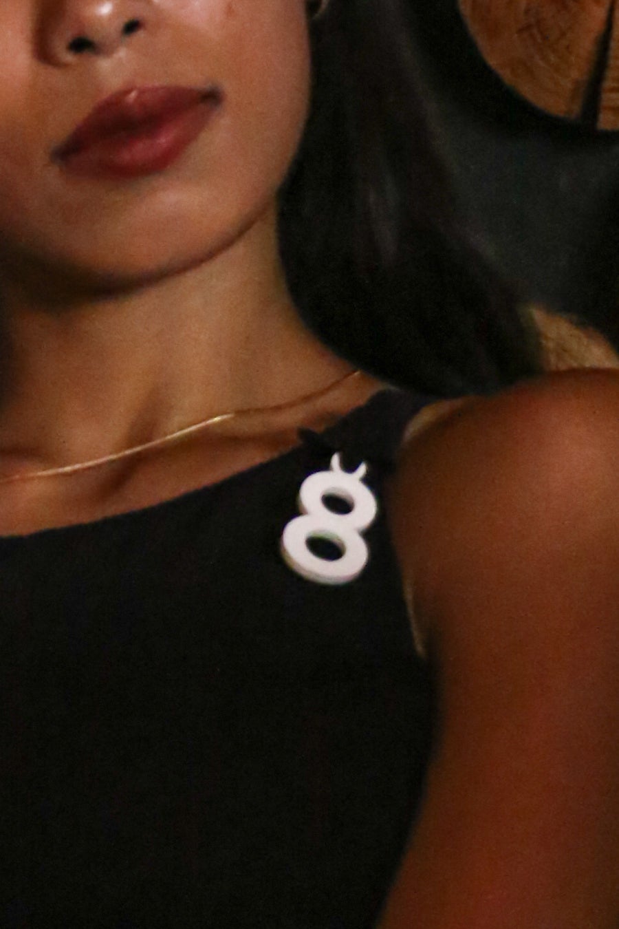 胸元のチャームはサウナに入っても熱くなりにくいゴム製です。