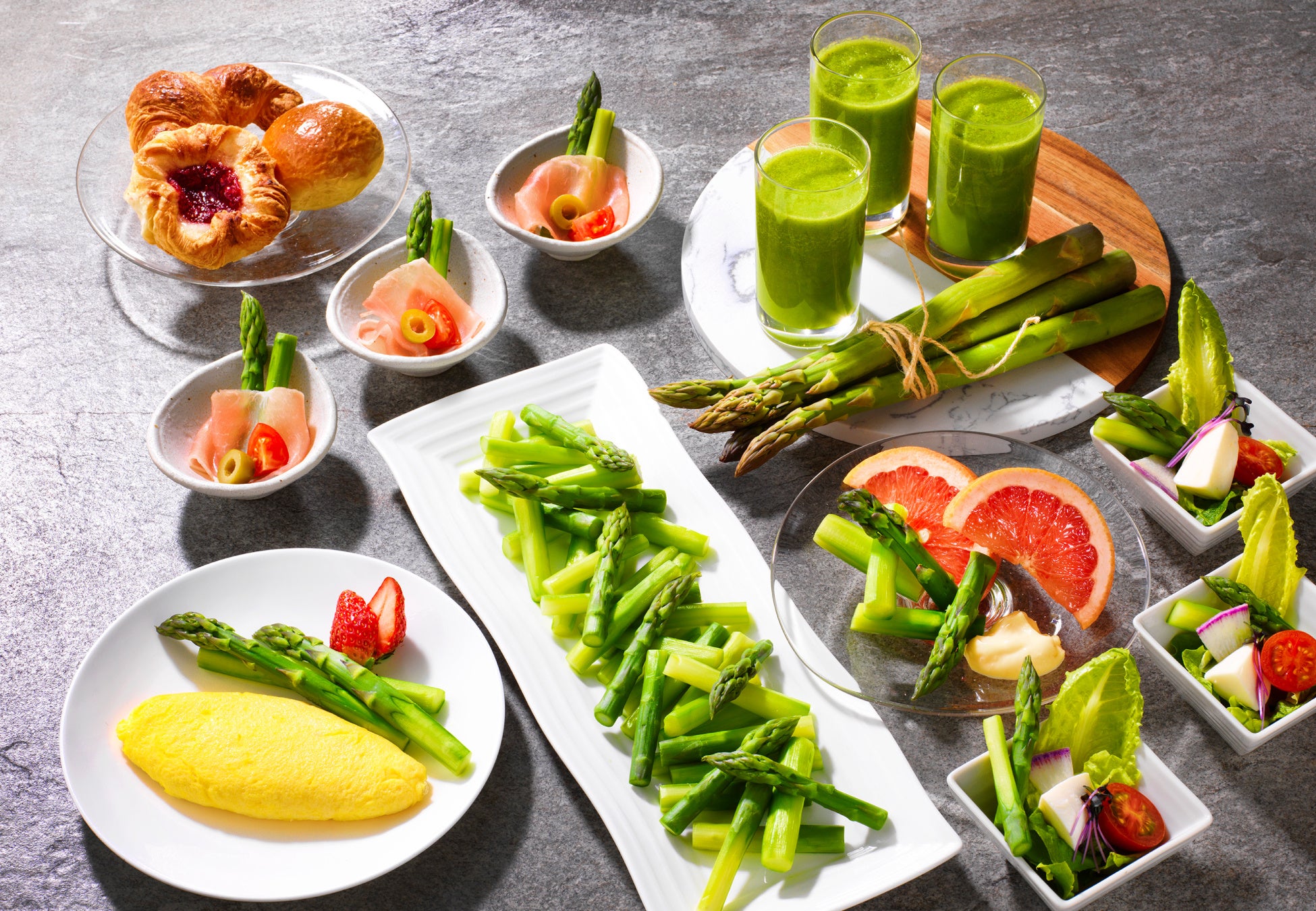 新作アスパラガスランチメニューや、朝食ブッフェなど、産地ならではのアスパラガスフェアを開催