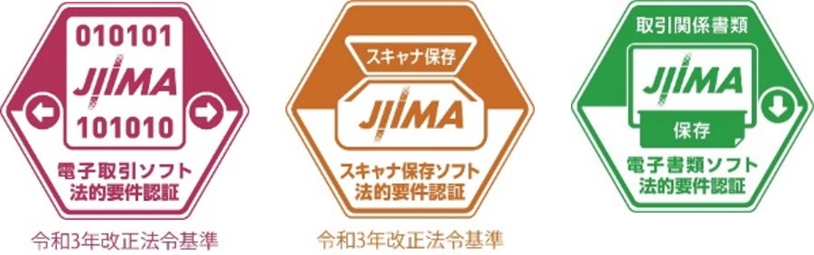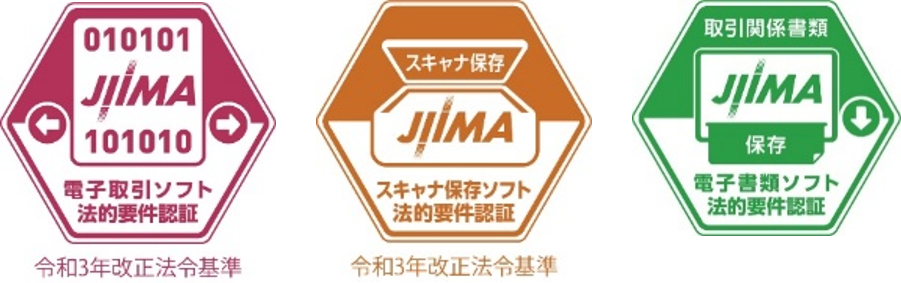 「DigitalWork Accelerator 電子取引管理サービス」は公益社団法人日本文書情報マネジメント協会(JIIMA)の「電子書類ソフト法的要件認証制度」「電子取引ソフト法的要件認証制度」「電帳法スキャナ保存ソフト法的要件認証制度」による製品認証を取得しています。電子帳簿保存法に対応するための法的要件を満たしているソフトウエアとなりますので安心してご利用いただけます。