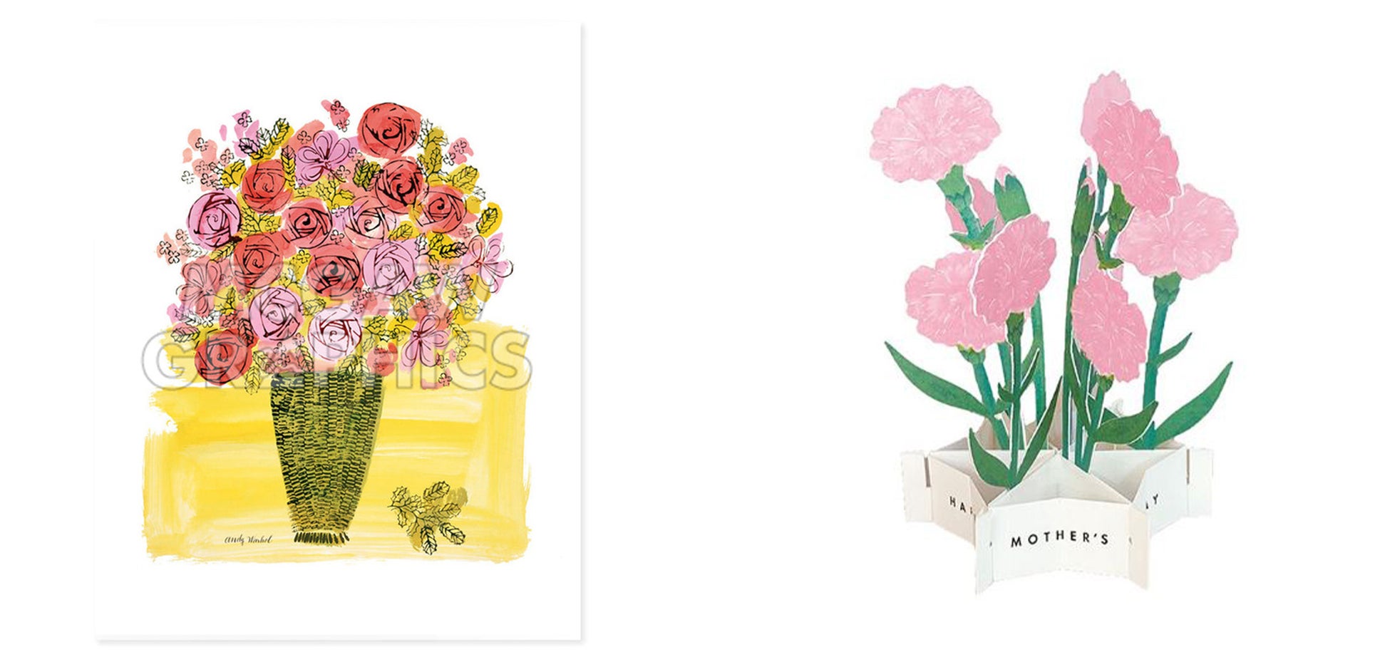 左)ウォーホル: (Stamped) Basket of Flowers, 1958 ポスター