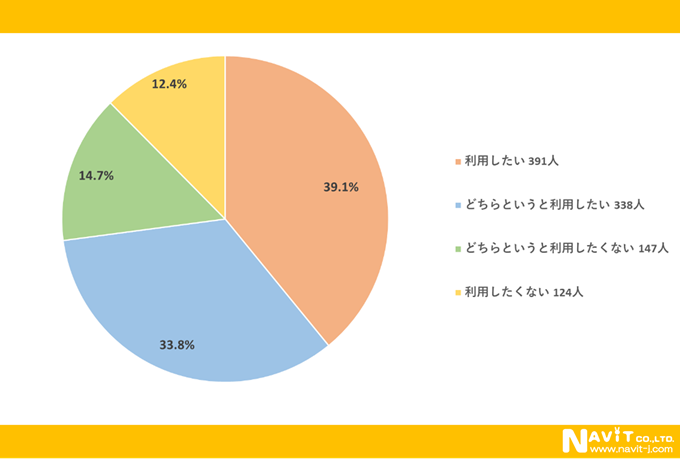 開業したら利用したいかどうかについては「利用したい」391人と「どちらかというと利用したい」338人の合計が7割を超えました。