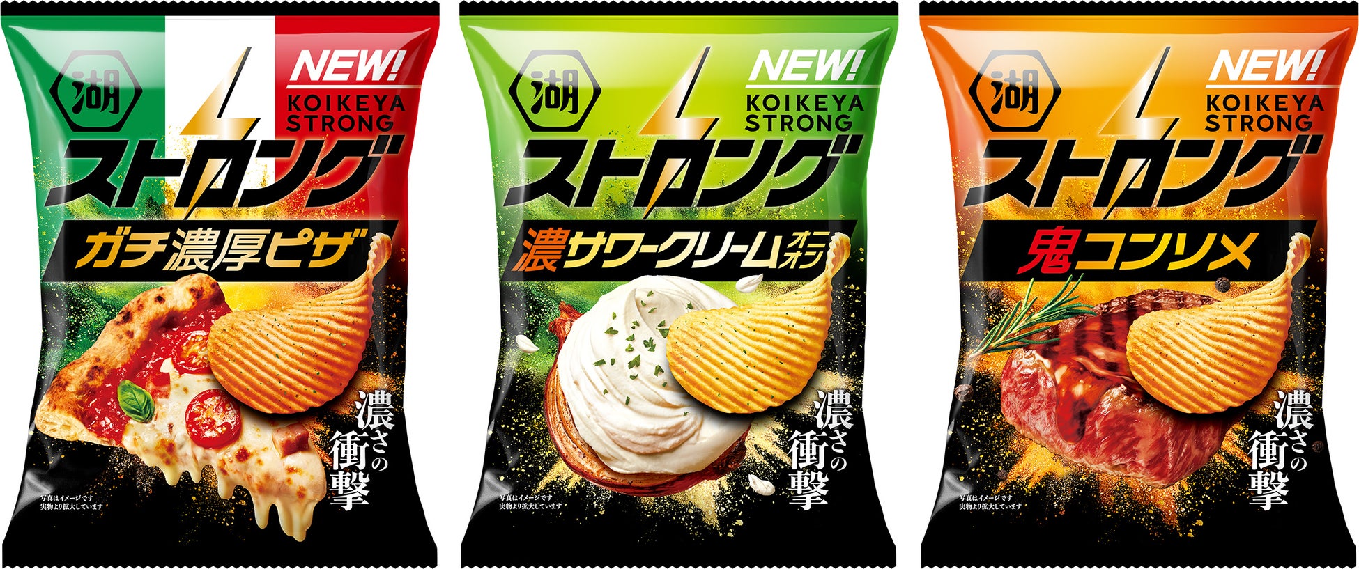 株式会社湖池屋(社長:佐藤章)は、濃厚な味わいと食べごたえでご好評いただいている「湖池屋ストロング」ブランドをリニューアルし、デザイン・味わいともに新しくなった「湖池屋ストロング 濃サワークリームオニオン」「湖池屋ストロング 鬼コンソメ」の2品と、ご好評いただいている味わいはそのままに、デザインを新たにした「湖池屋ストロング ガチ濃厚ピザ」をあわせた定番3品を、2024年4月1日(月)に全国・全チャネルで発売します。