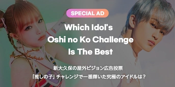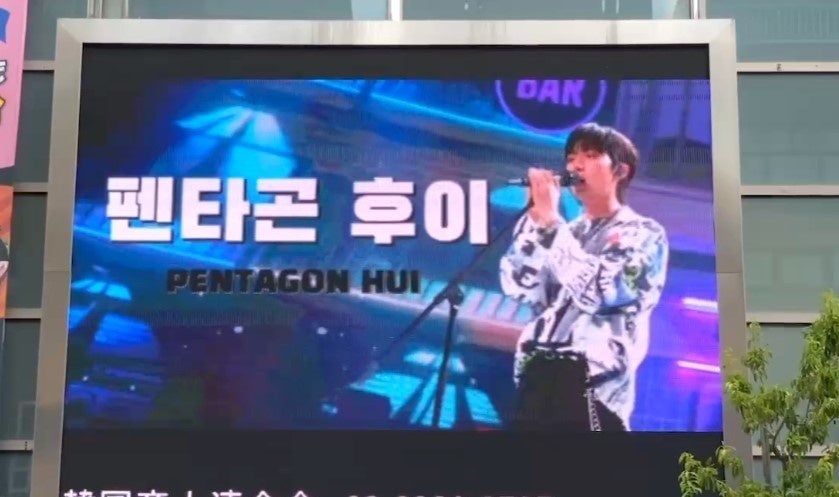 2023年8月7日(月)から8月13日(日)までの期間で開催した「「推しの子」チャレンジで一番輝いた究極のアイドルは?」の投票において1位に選ばれたPENTAGONのフイさんの応援広告が、新大久保のK-PLAZA 1号館の屋外ビジョンで上映中です。