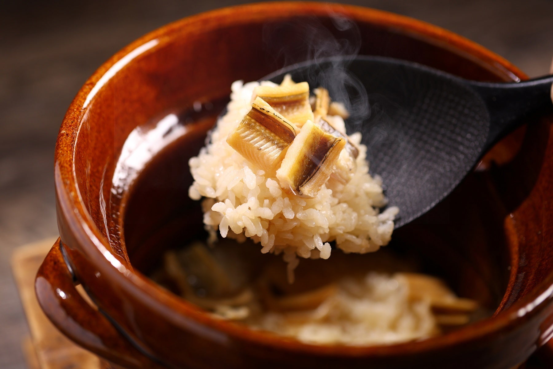 「穴子の釜めし」は、穴子の柔らかく、ほろりとした食感と釜炊きされたご飯の甘みや香りがご堪能いただけます。