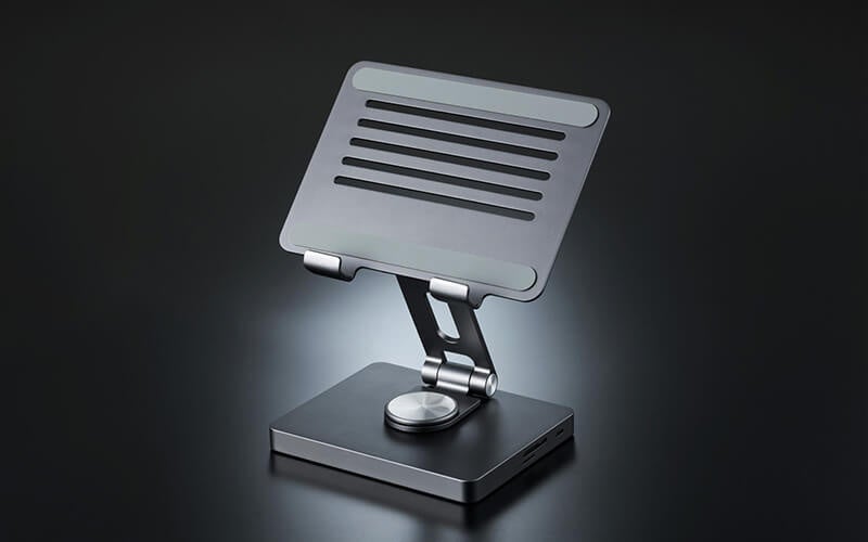ドッキングステーション機能を備えた、アルミ筐体のタブレットスタンド