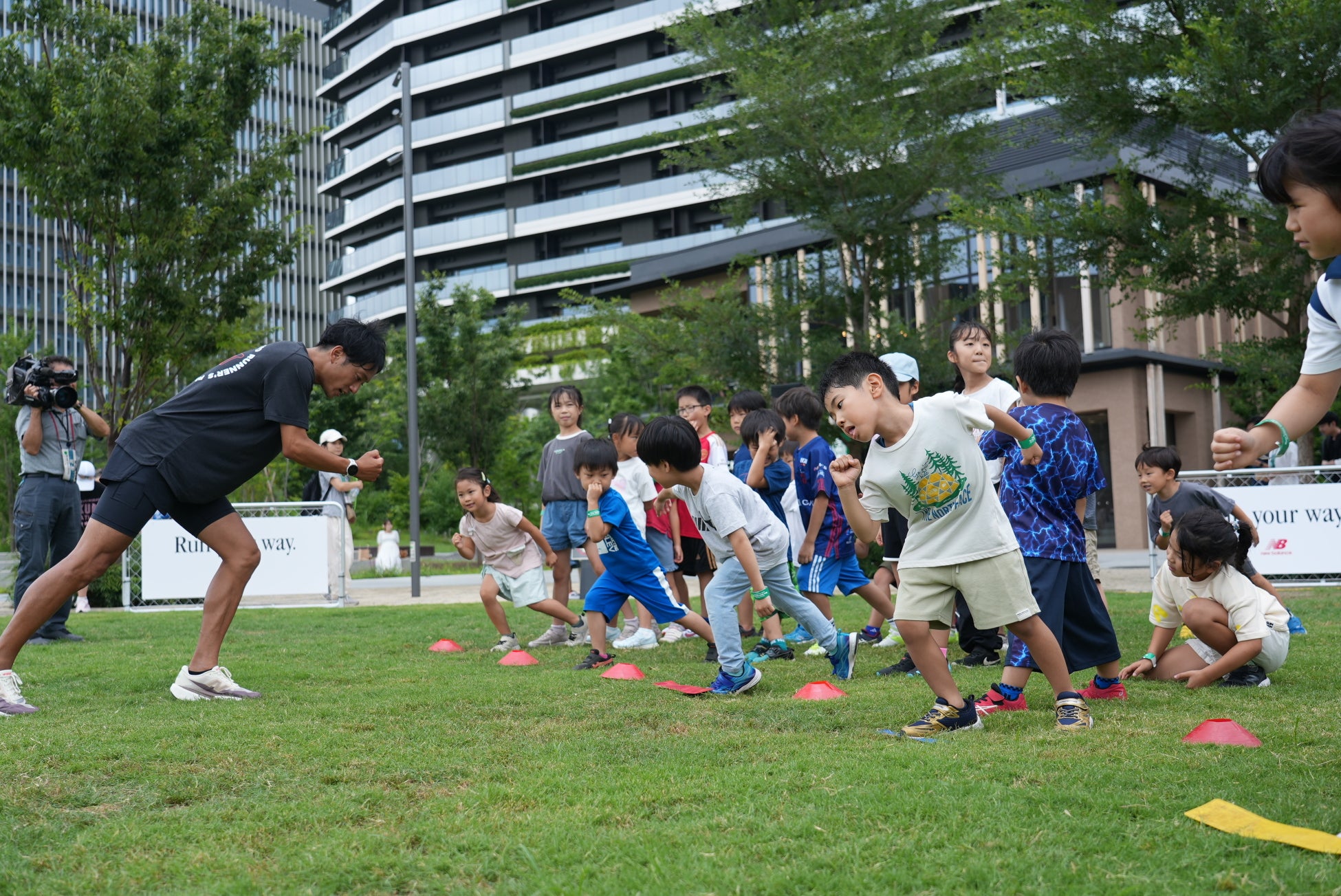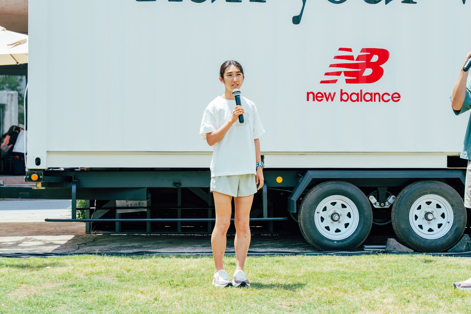 2日間のイベントでは20を超えるランニングプログラムを実施。キッズ向けのかけっこ教室から、ニューバランスのコーチ陣による走力別プログラム、ピラティスやヨガとランを組み合わせたプログラムや、Run & Sauna、そして様々なジャンルで活躍中のハリー杉山さん、狩野 英孝さん、おばたのお兄さん、ワタリ119さんらによるプログラムなど、多彩なプログラムを約850名のランナーたちが楽しみました。7月13日(日)には世界の舞台で活躍するアスリート田中希実選手の日頃のトレーニングを追体験できる「アスリートレシピ」プログラムに、当初予定がなかったシークレットゲストとして田中希実選手が登場。参加ランナーの皆さんを激励しました。