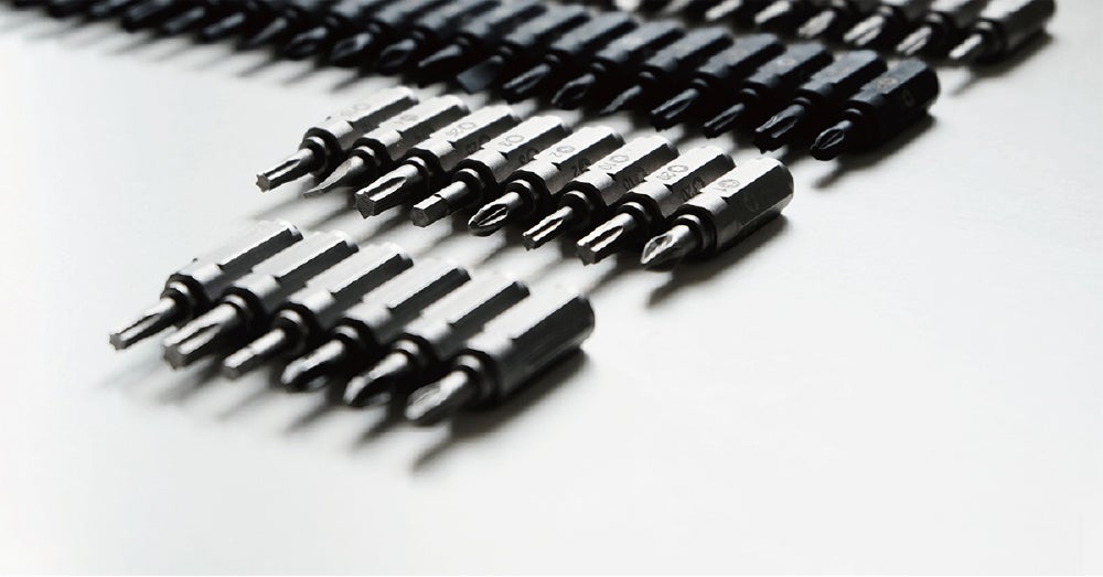 マイナス(スロット/フラット)、プラス(フィリップ)、六角形(Hex)、インペリアル六角形(Hex)、スター、ロバートソン(Square)、ポジドライブ(Pozi)など、最も使いやすい形状の16種類のビットがあります。