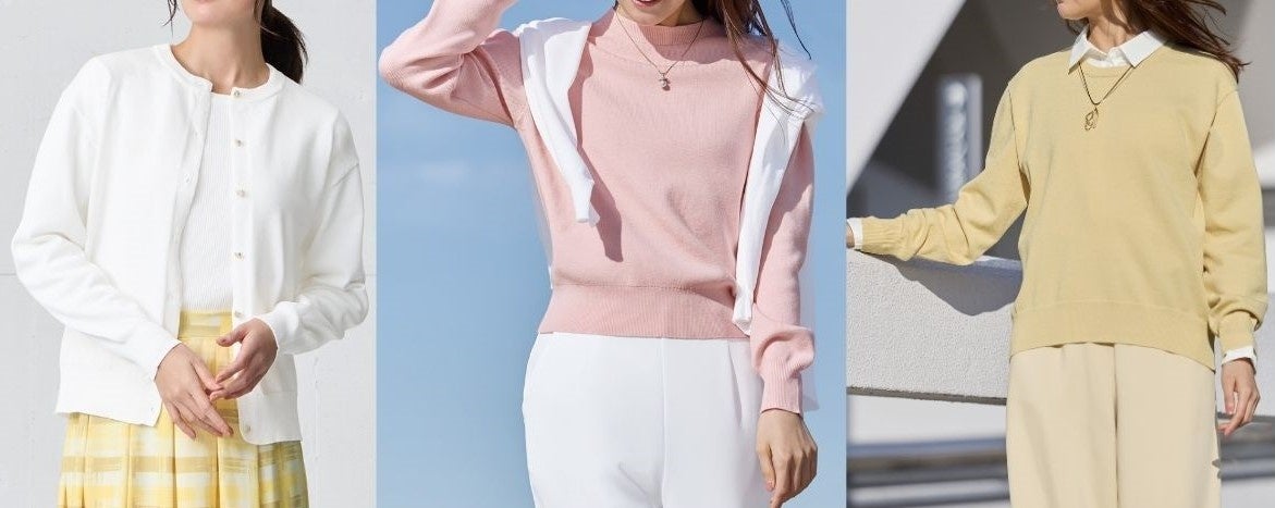 季節の変わり目に活躍し、毎日の装いに自然と取り入れやすいアイテムとして「春ニットシリーズ」が新登場しました。毛玉が出来にくく、上品で着回し自在。日常遣いにぴったりのシリーズです。ベーシックリブニット、ベーシックニット、カーディガンの全3型をラインナップ。すべて税込2,990円という手に取りやすい価格でご用意しました。