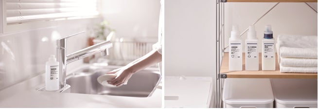 また、これまで販売していた洗剤も今回発売の新アイテムと合わせてボトルを変更し、商品名、使い方などがわかりやすいパッケージにしています。
