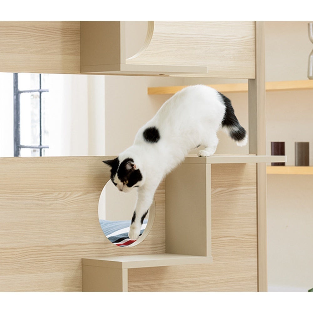 - 入り組んだステップに愛猫もご機嫌!キャットタワーと一体型のパーテーション