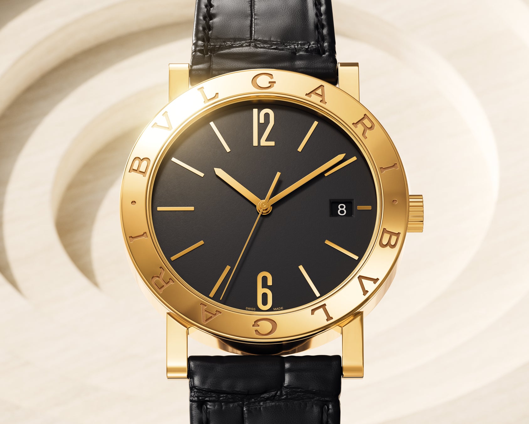 「ブルガリ・ブルガリ」は大胆なベゼルとダイヤルのミニマリズムを見事に調和させ、時を刻むローマン ジュエラーとしての魂とその中核にあるスイスの精密さにより見る人を惹きつけます。