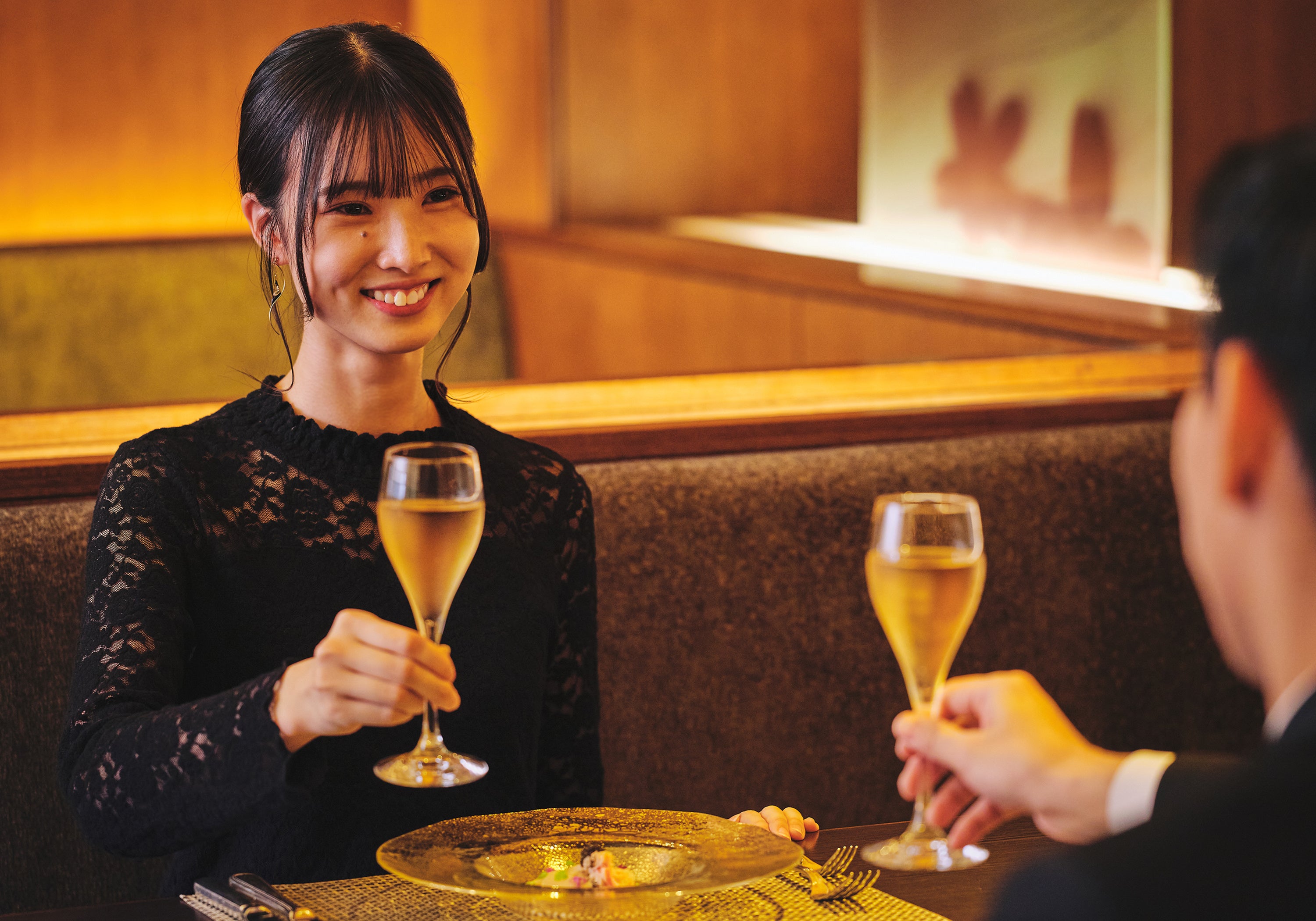 4日間限定の特別メニューです。今年のおすすめは、料理にペアリングしたグラスワイン付きのセットで、コースにあわせスパークリングワイン、白ワイン、赤ワインをそれぞれグラスで提供。お酒が苦手な方にはノンアルコールワインもご用意しております。