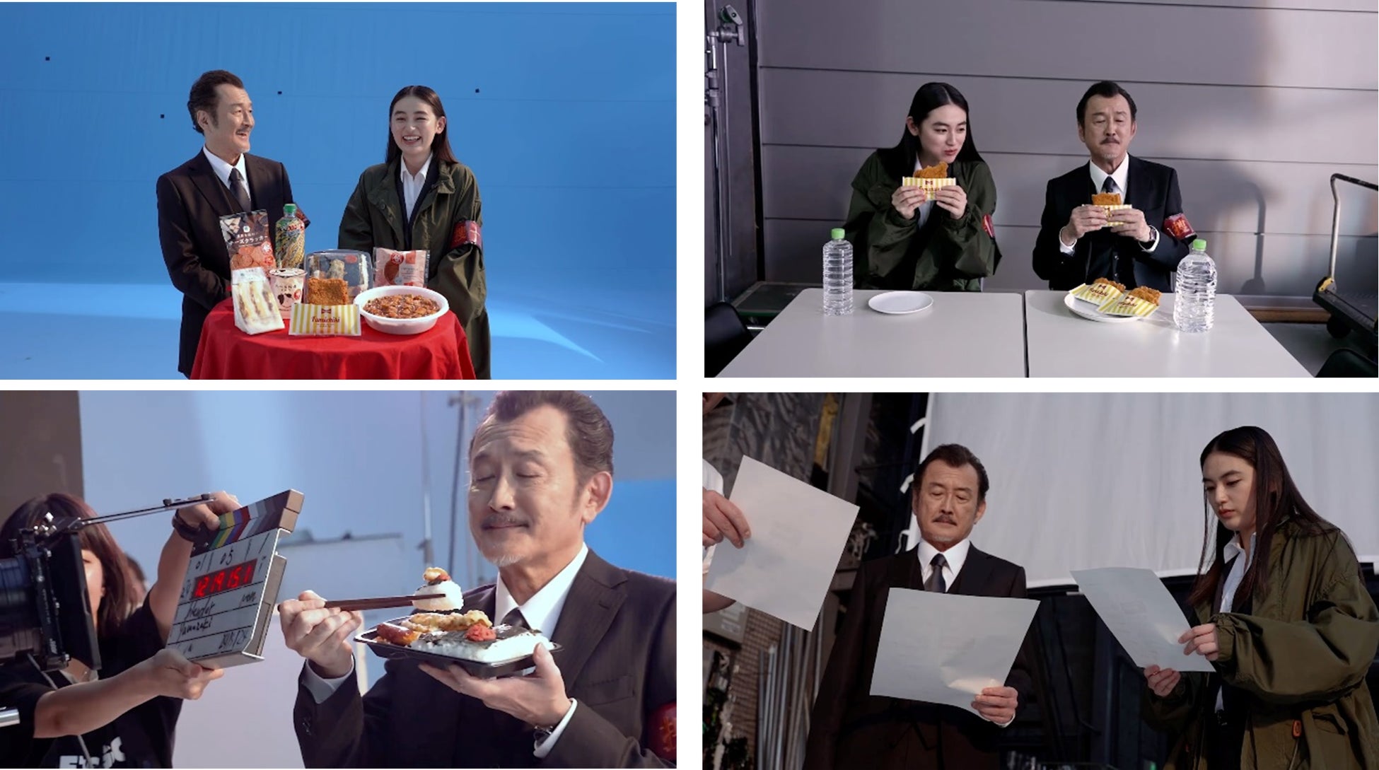 撮影を振り返って八木さんは、「今回は刑事役だったので、今までのファミマのCMの中で一番真剣な表情をしているんじゃないかと思うくらい、シリアスに努めました。」とコメントしました。吉田さんも「髪をなびかせながら真剣な表情をしていて、今までで一番かっこよかったよね。」とコメント。