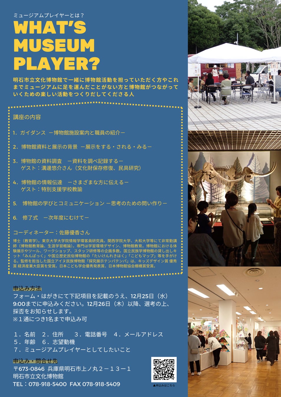 明石市立文化博物館、「MUSEUM PLAYER!養成講座2024」受講生募集!
