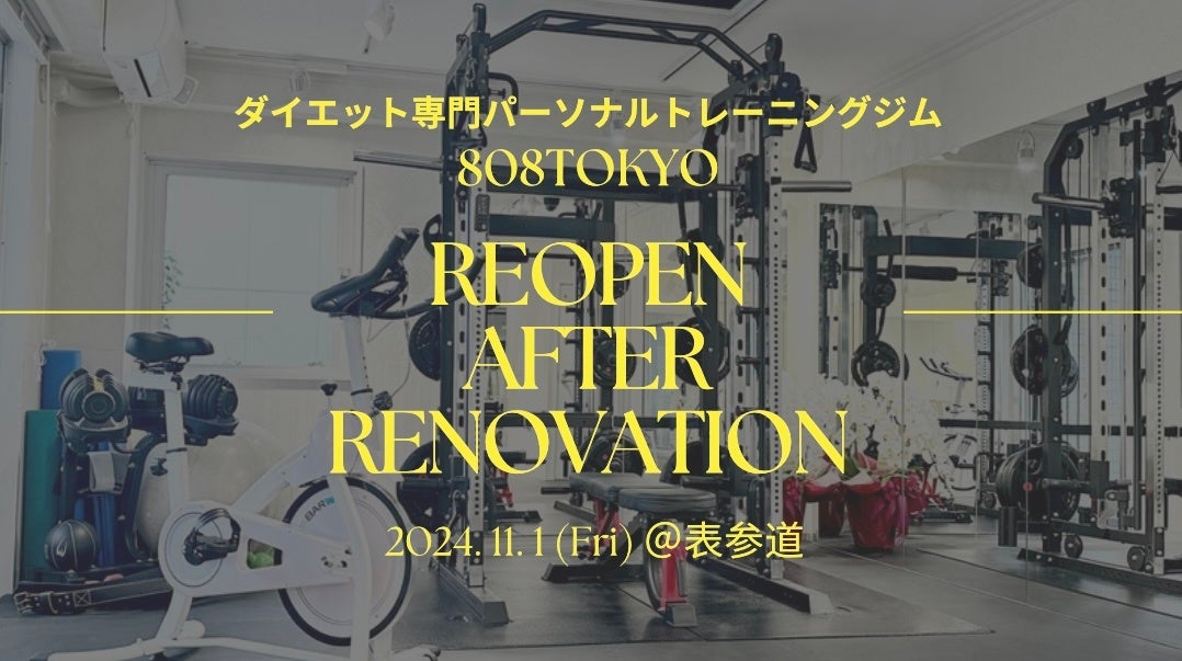 渋谷区千駄ヶ谷の人気ダイエット専門パーソナルトレーニングジム「808TOKYO」が、11月1日(金)に表参道にてリニューアルオープンしました。
