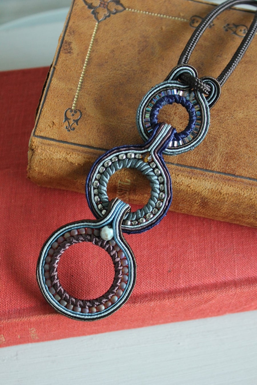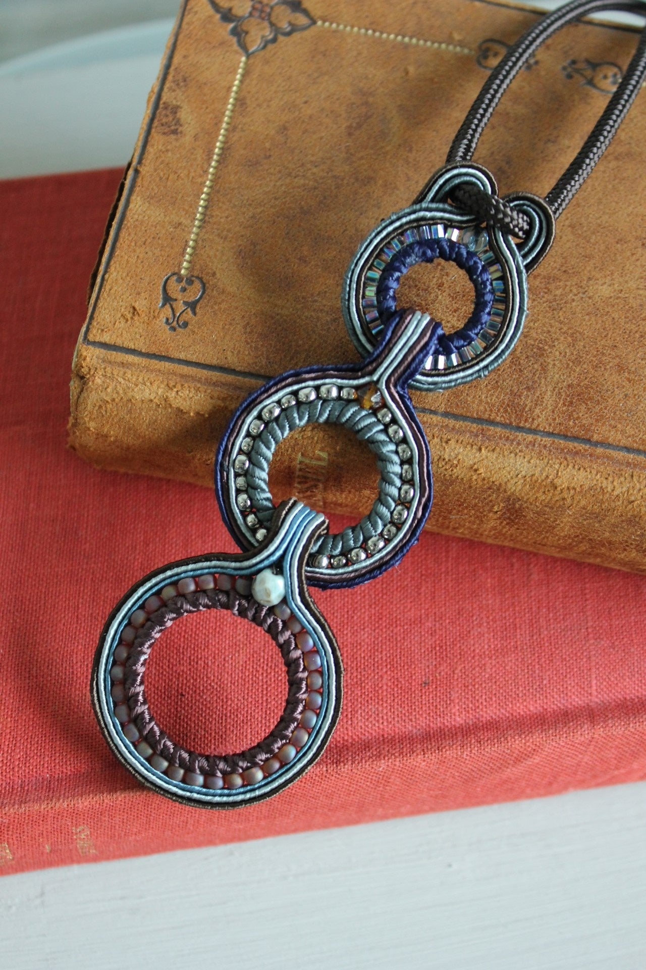ヨーロッパの伝統的なコード刺繍であるソウタシエの初心者向け講座になります。コードの色々な使い方を学びましょう。コードを巻いたり、シードビーズを縫い付けたりして、眼鏡かけにも使えるネックレスを作ります。