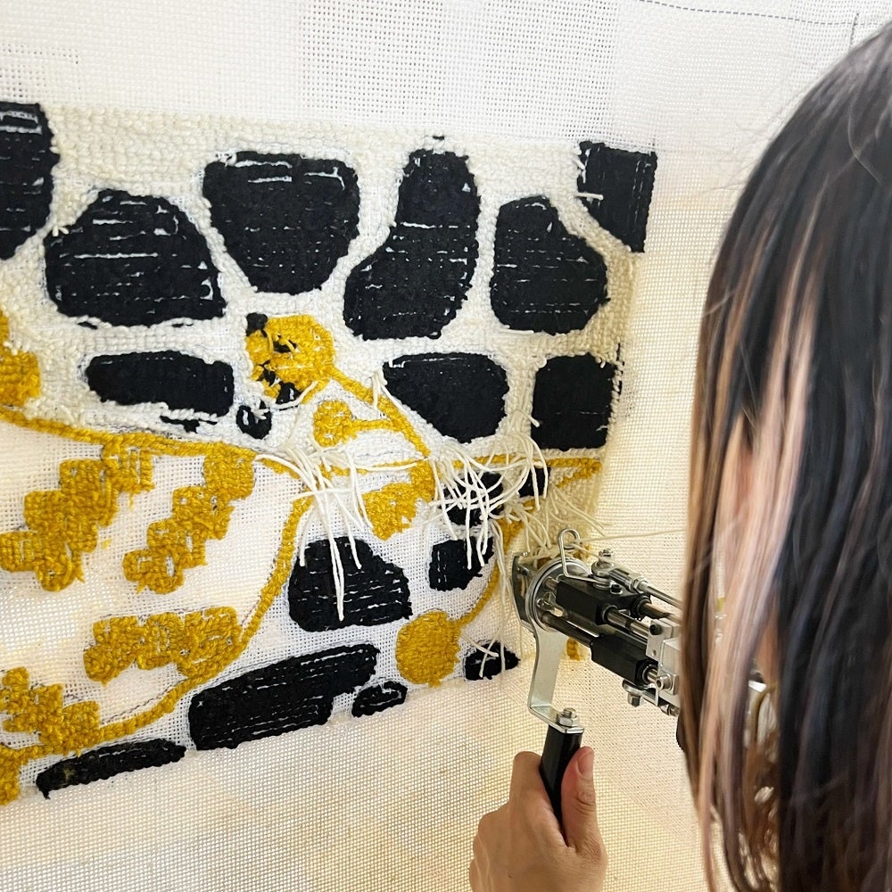 タフティングは、主にラグを制作するために使われる技法です。タフティングガンという専用機材を使って、布に絵を描くように毛糸を打ち込みながらラグを作りましょう。