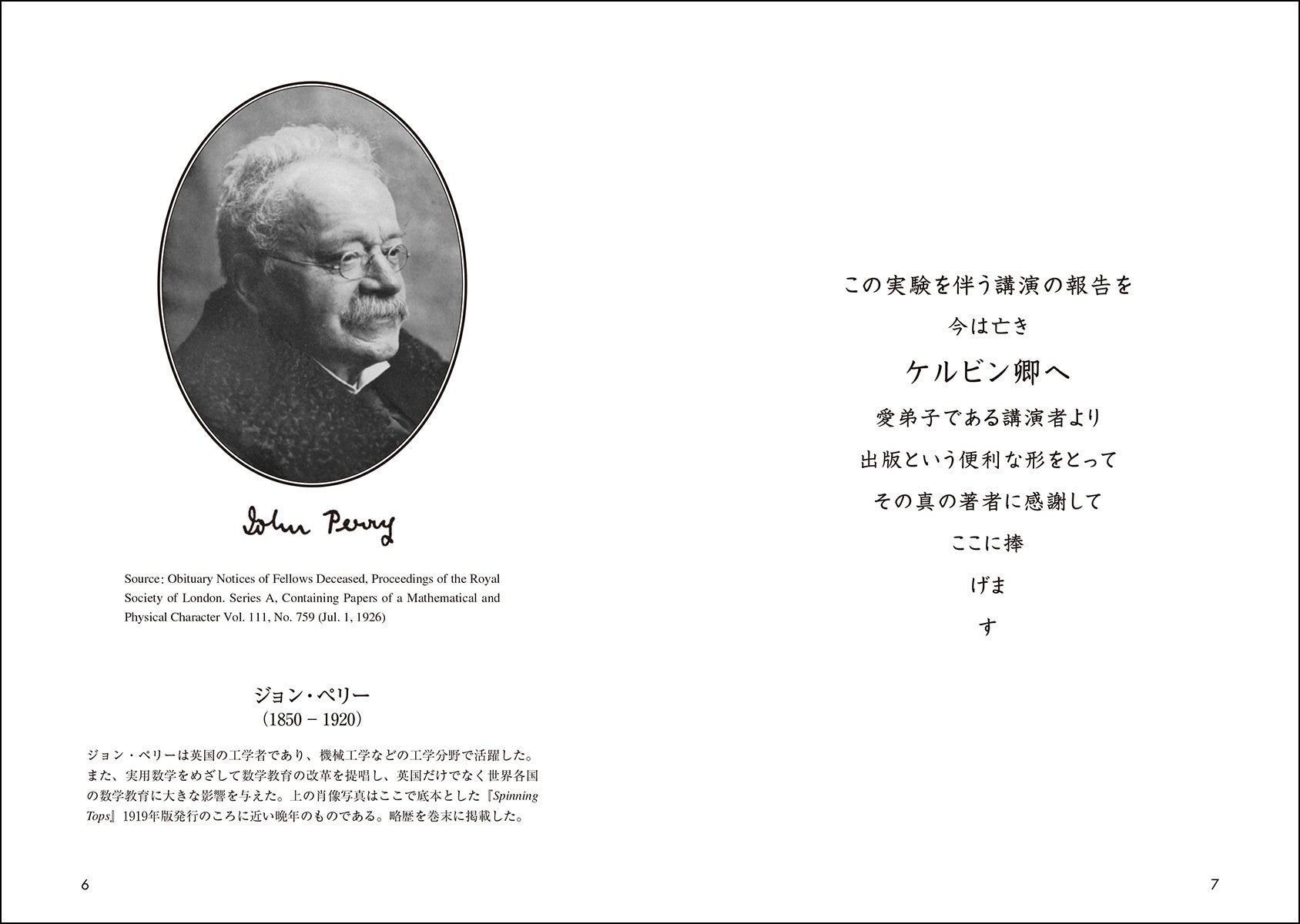 1850年、北アイルランド生まれ。数学者、工学者。1875年、来日し工部大学校(東京大学工学部の前身)助教師。1886年、王立科学学校教授。1890年、リーズ市での英国学術協会主催の職工向け講演会で本書の元になったコマの講演を行う。同年、本書初版出版。1900年、英国電気学会会長。1906年ロンドン物理学会会長。1920年逝去。著書『The Calculus for Engineers』(Hansebooks刊)『Applied Mechanics』(Forgotten Books刊)『Elementary Practical Mathematics』(Kessinger Publishing刊)。