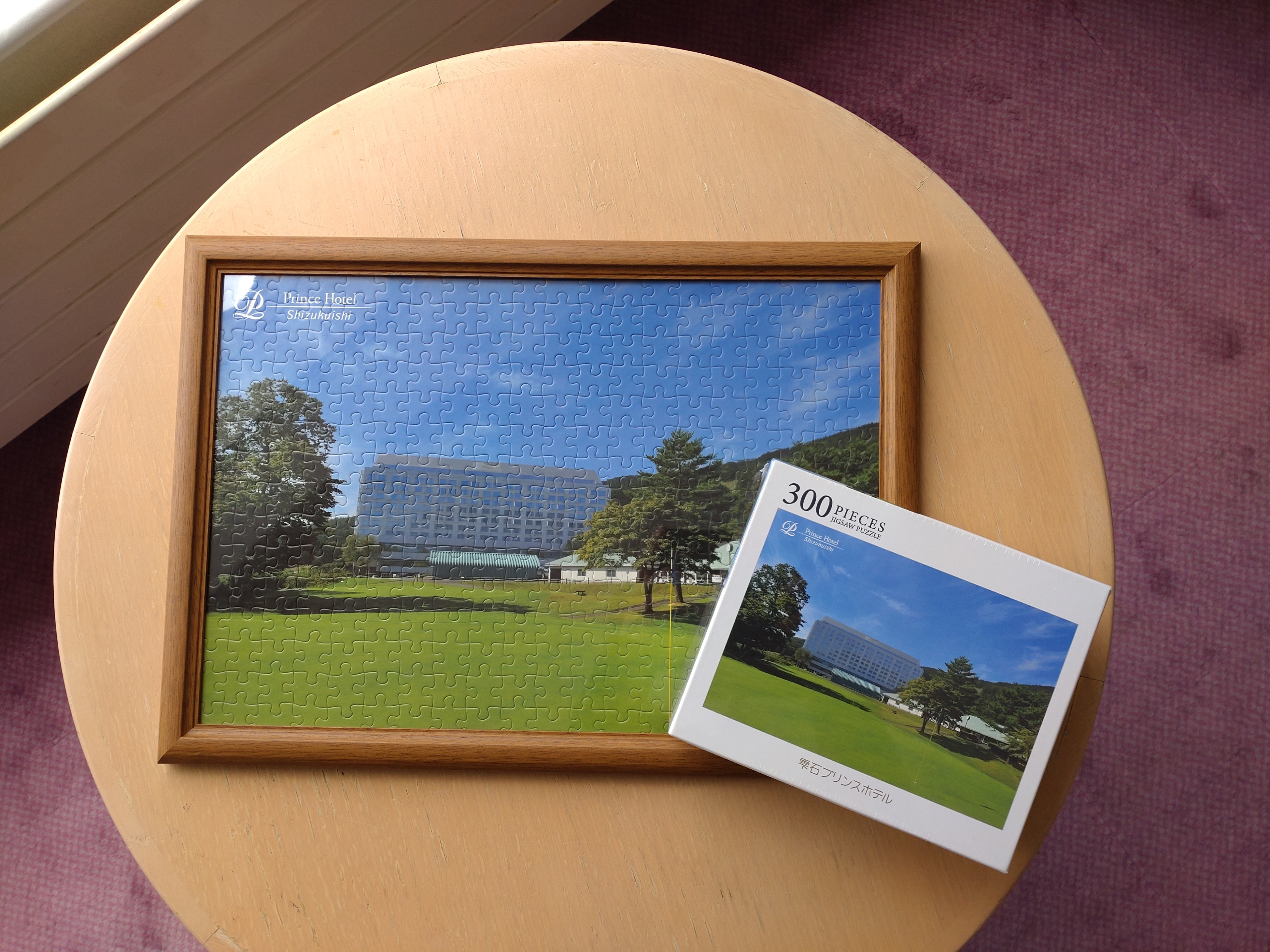 ジグソーパズルは全300 ピース。隣接する雫石ゴルフ場から松コース1 番ホールからの景色とホテル全景を写したホテルオリジナルのパズルです。完成させたパズルはお持ち帰りいただけるので、ご旅行後の思い出にもなります。
