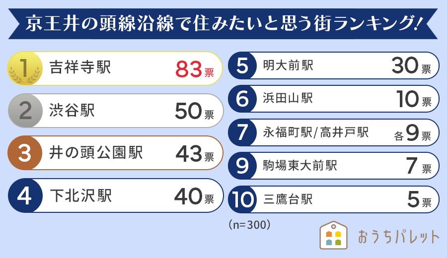 おうちパレット・男性が選ぶ京王井の頭線沿線の住みたい街に関する調査