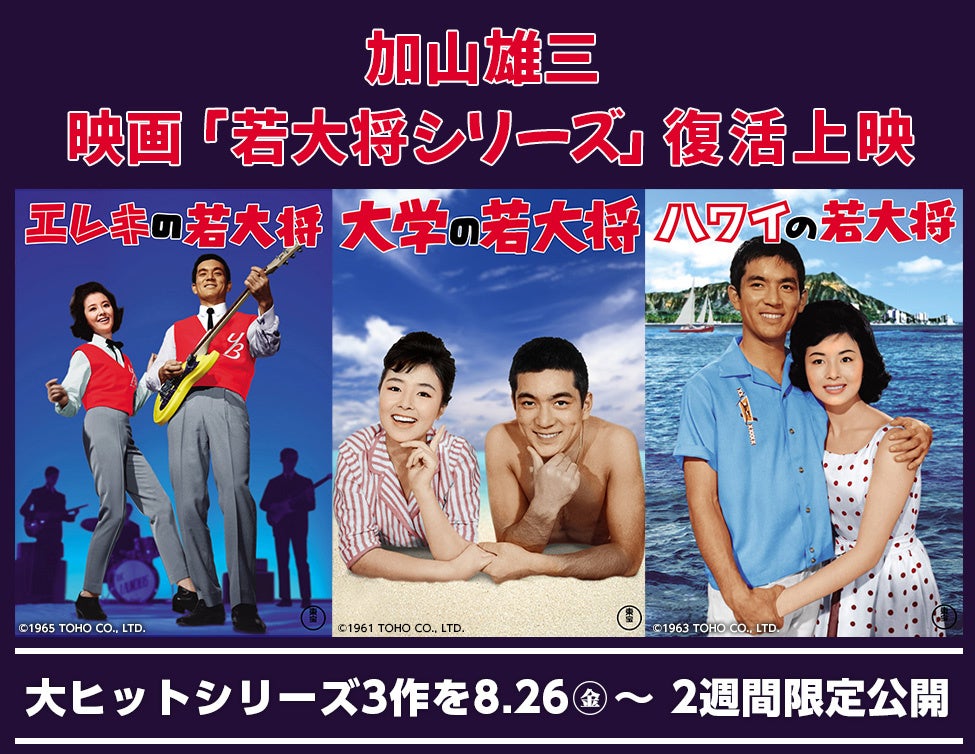 ◆「加山雄三ラストショー」:https://liveviewing.jp/kayamayuzo/ ◆「若大将シリーズ」復活上映:https://liveviewing.jp/wakadaisho/