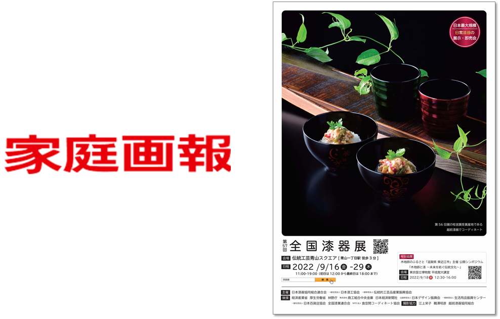 雑誌『家庭画報』が審査に参加。第57回「全国漆器展」より「家庭画報賞」を新設