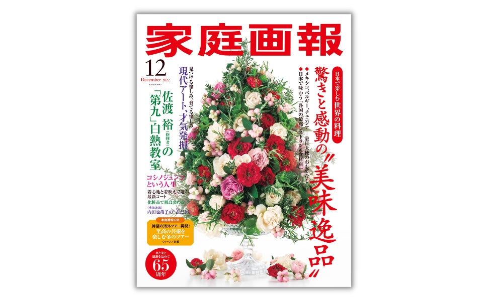 1958 年 2月創刊。毎月1日発売。「夢と美を楽しむ」をテーマに、 時を経ても色褪せない「本物」を追求し、日本の四季、伝統文化、食、おもてなしの心などを美しい写真とともにお届けしています。「家庭画報の旅」をはじめ、家庭画報ショッピングサロン(通販)、イベント事業等も展開しています。