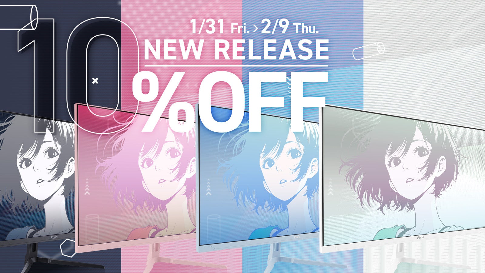 販売を記念して、2025年1月31日(金)~2月9日(日)の期間で、『PX275WAVEシリーズ』を対象とした10%OFFセールをPixio全店で開催します。