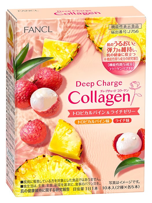株式会社ファンケルは6月17日(火)から、「ディープチャージ コラーゲン トロピカルパイン&ライチゼリー」(1箱10本入り/価格:2,268円<税込>)を通信販売と直営店舗にて数量限定で発売します。機能性関与成分「コラーゲンペプチド」を配合し、「肌のうるおいと弾力を維持し、肌の健康に役立つ」機能が報告されています。