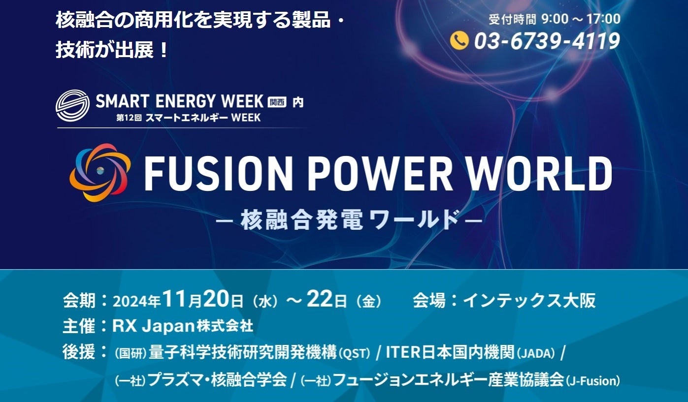 RX Japan株式会社(本社:東京都中央区、代表取締役社長:田中 岳志)は「FUSION POWER WORLD -核融合発電ワールド-」を2024年11月20日より3日間、開催いたします。