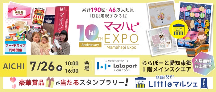 『おみせやさんごっこ』遊びができちゃう絵本など豪華賞品が当たる!大人気イベント「ママハピEXPO」がららぽーと愛知東郷にやってくる!