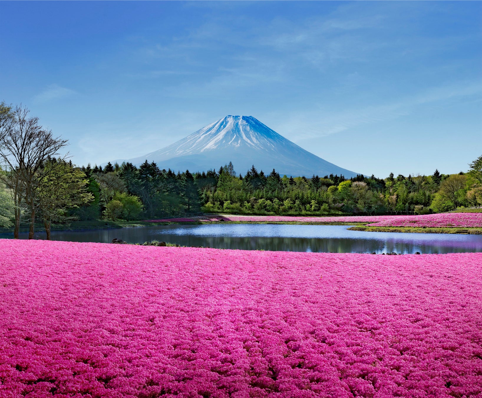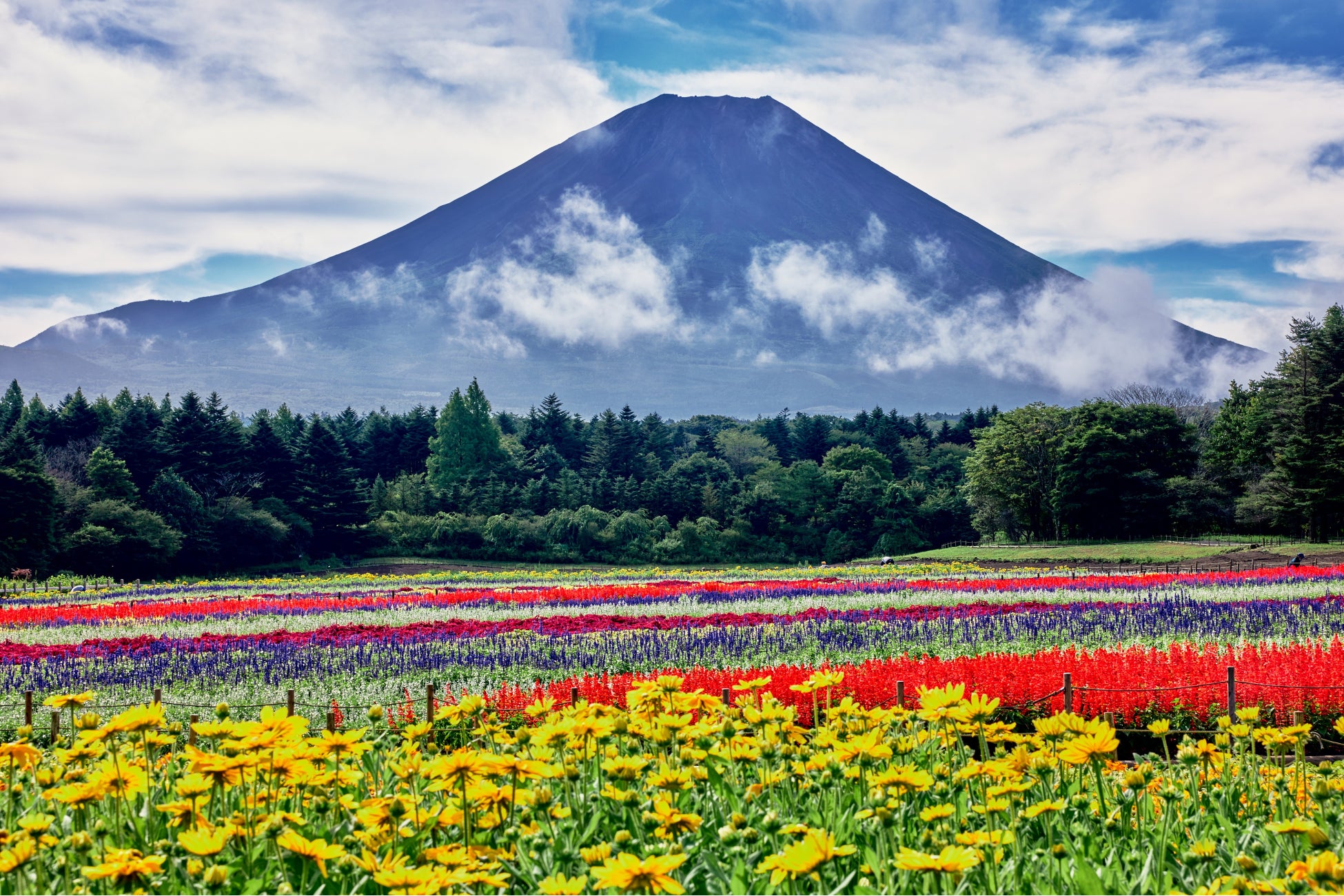 例年4月中旬~5月にかけて残雪の美しい世界遺産・富士山と、自然あふれる広大な場内の敷地いっぱいに咲き誇る芝桜との共演が楽しめる春の風物詩「富士芝桜まつり」を開催。夏から秋にかけて季節の花々が織りなす美しい絶景に出会える庭園です。