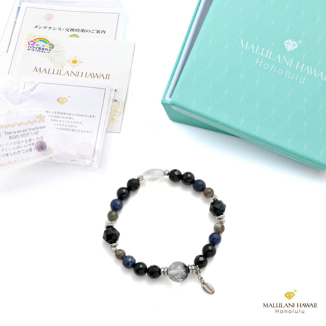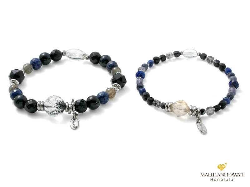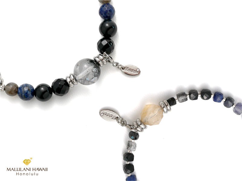 ルチルクォーツ&黒系天然石を使用した、おしゃれなメンズパワーストーンブレスレット、ハワイ発「マルラニハワイ」より新登場!【男性へのプレゼントにも♪】