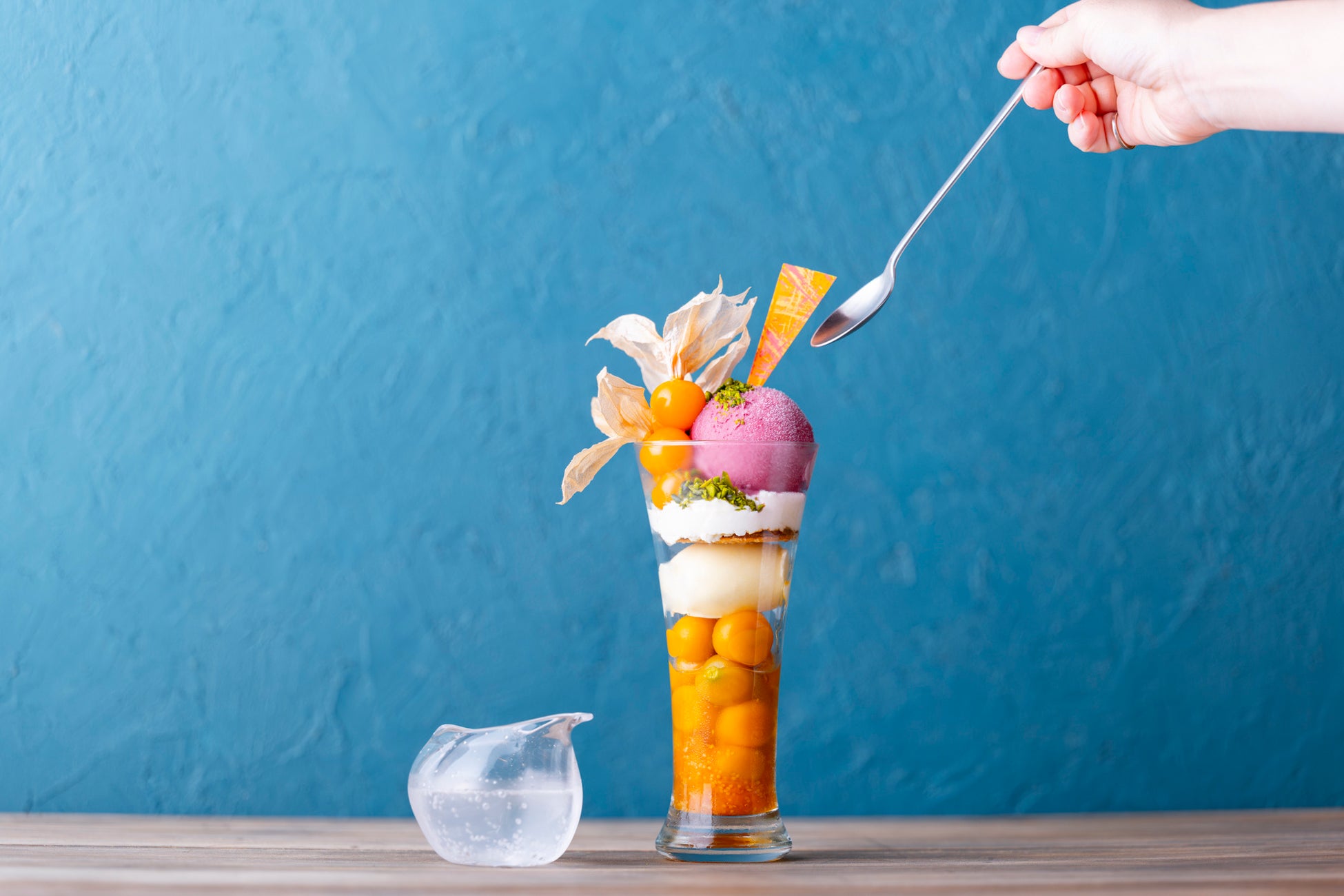 【コートヤード・バイ・マリオット 白馬】白馬育ちのフルーツほおずきを満喫する、黄金の夜パフェ期間限定パフェ「Golden Harvest Parfait(ゴールデン ハーベスト パフェ)」