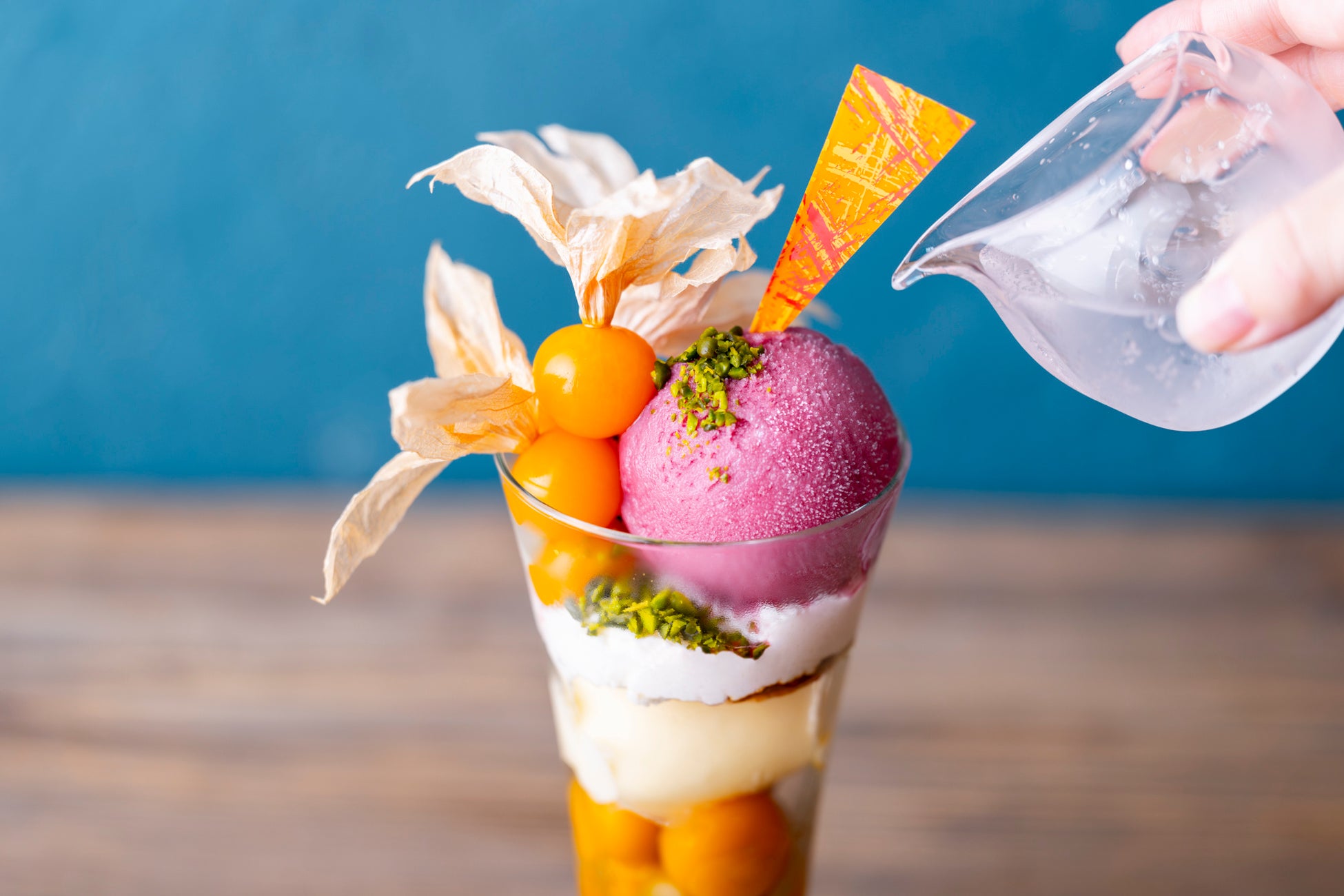 旬の希少なフルーツほおずきを味わう期間限定のパフェで、秋の優雅なひとときをお過ごしください。