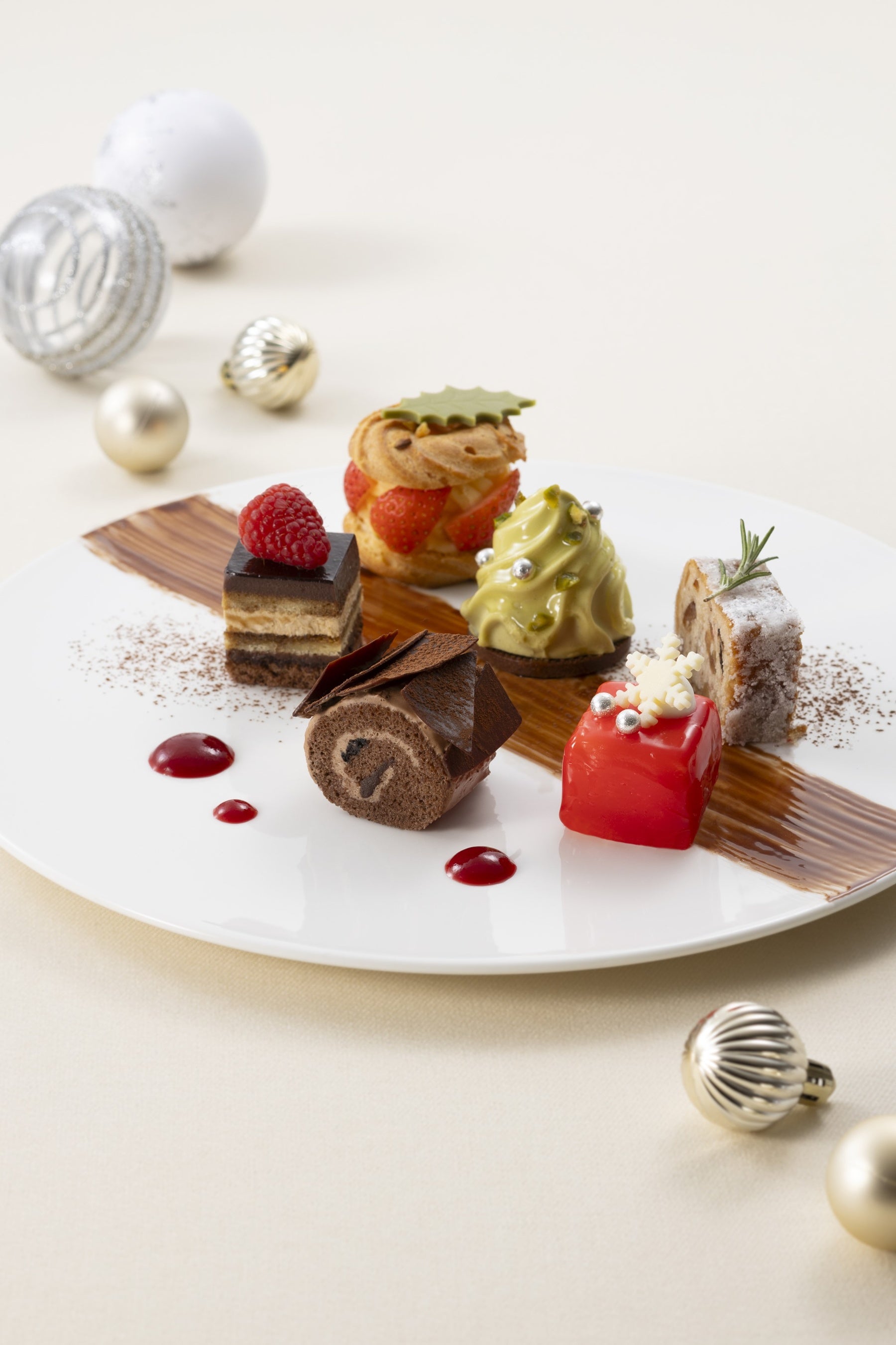 ・メニュー例:シュトーレン、ピスタチオのツリームース、ブッシュ ド ノエル、パリブレスト、フランボワーズムース 他