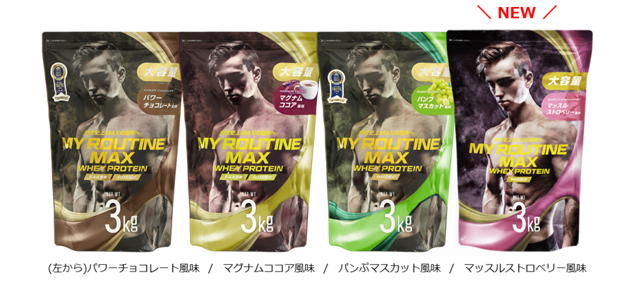 マイルーティーンMAX 期待のホープ!コスパ重視の大容量3kgシリーズに春におすすめの旬フレーバー「マイルーティーン MAX マッスルストロベリー風味」が登場!