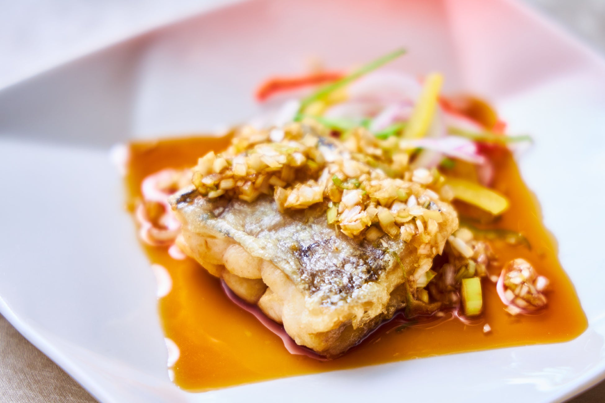 前菜からデザートまで、全7品の本格中国料理をリーズナブルな価格でお楽しみいただけます。衣はサクサク、ふんわりとした太刀魚の唐揚げは、香りの良い長ねぎがたっぷり入った油淋ソースでお召し上がりください。 “小海老と黒春雨 辛子煮”では、さつまいもから作られている太くて食べ応えのある黒春雨を使用し、豆板醤の辛味と醤油、スープの絶妙なバランスの味つけをお楽しみいただけます。食事は3種類からお選びいただけ、中でも「桂林担々麺」は辛さと旨みを両立させた人気の一品です。締めくくりはホテルパティシエ特製デザートをご堪能ください。