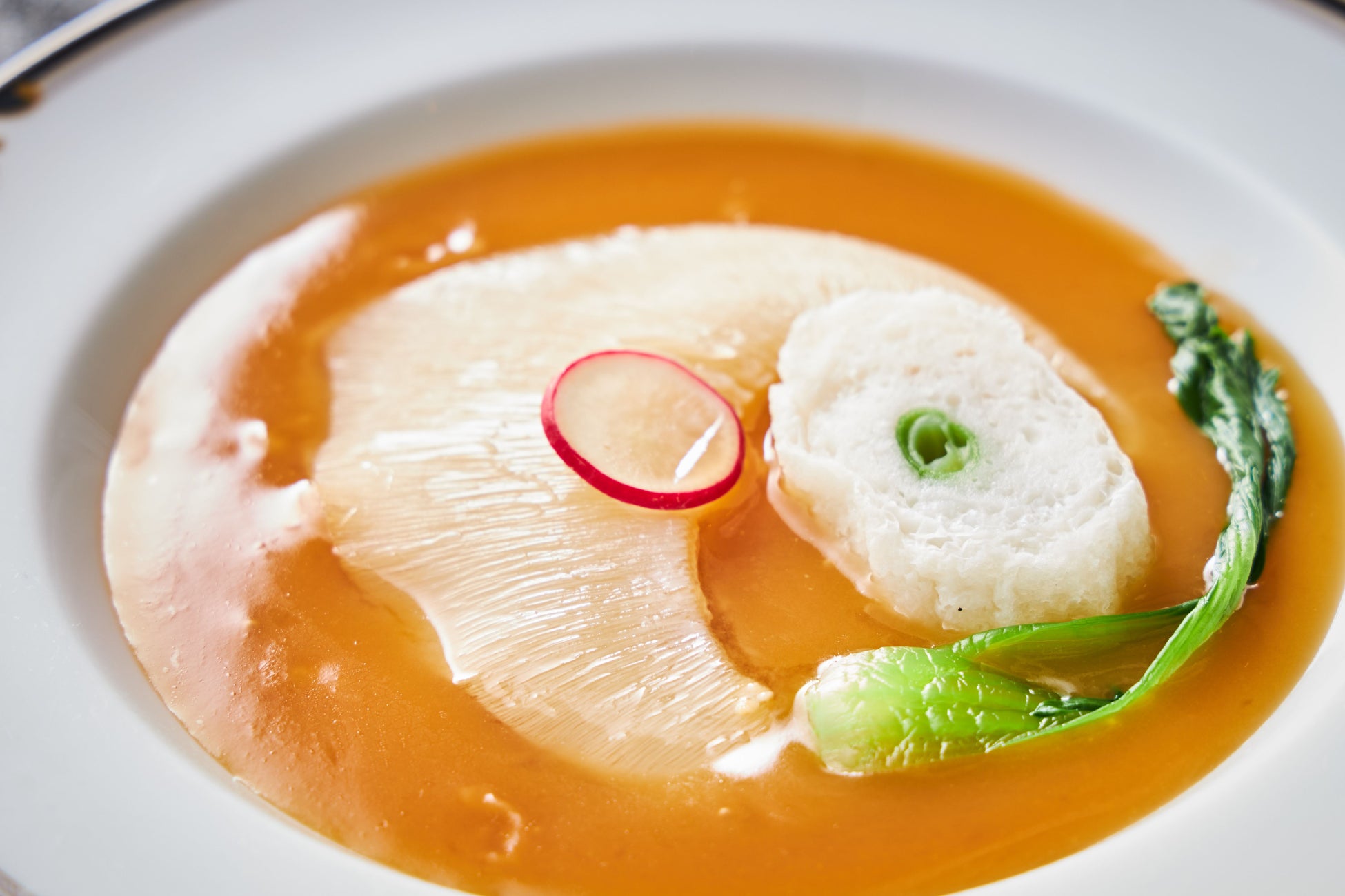 ふかひれ姿煮入りスープ 白きくらげ添え