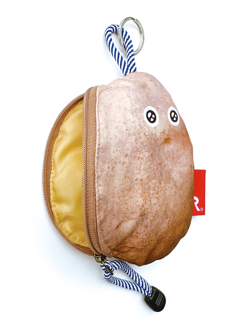ポテトポーチは、カルビーポテト株式会社がポテトチップス向きに品種開発したじゃがいも「ぽろしり」がモデル。トートバッグにつければ、ポテトチップス愛全開でお出かけを楽しむことができます。