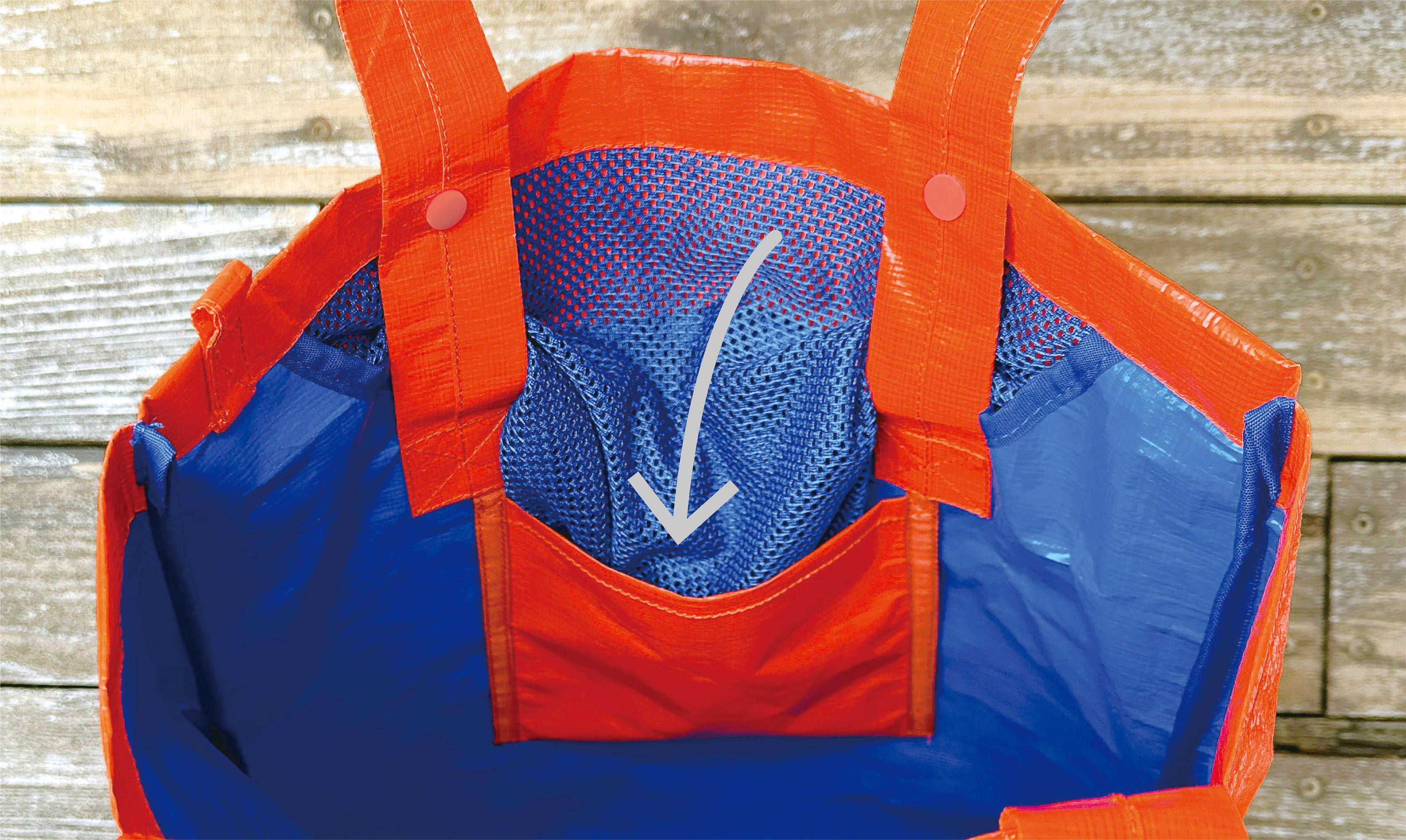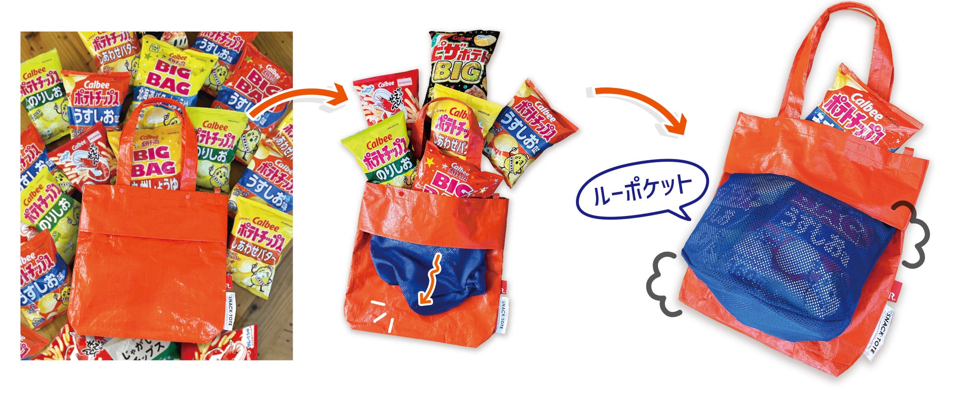 大量のスナック菓子を持ち運ぶことができる驚異の収納力!飛び出し膨らむ「ルーポケット」付き