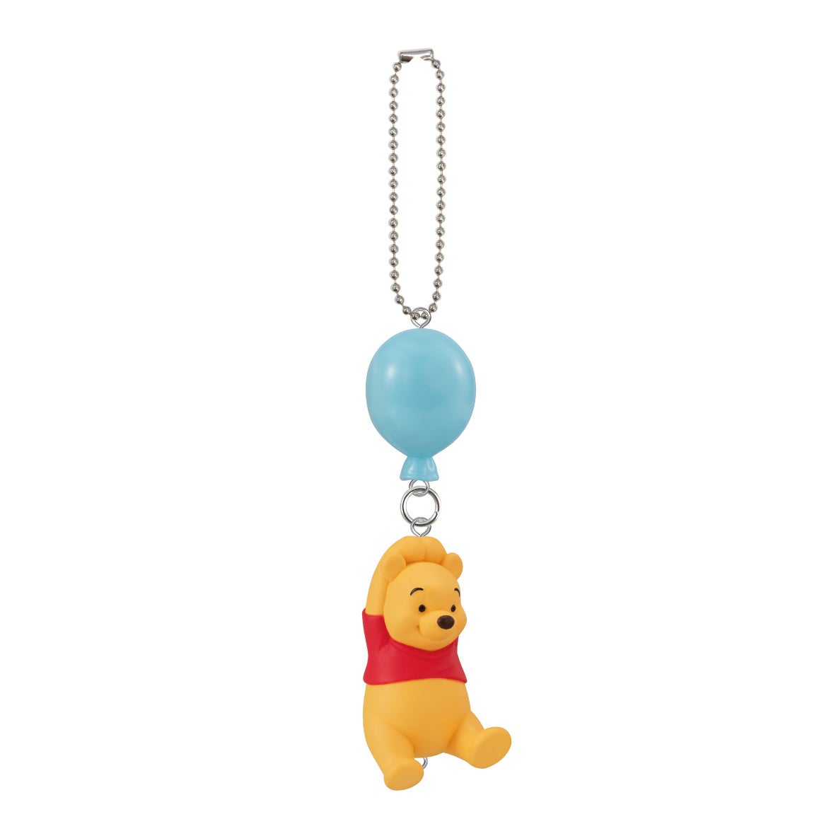 風船にぶら下がるくまのプーさんを再現したマスコットチャームです。くまのプーさんとピグレットは風船チャーム付き。ティガーとイーヨーはカニカンが付属しており、プーさんとピグレットの下につなげてぶら下げることができます。