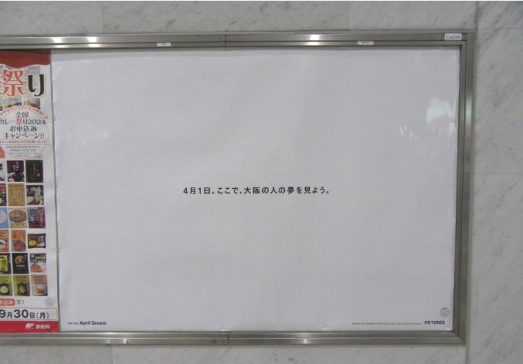 これに先立ち2024年3月25日(月)より(*1)、46道府県の駅に「4月1日。ここで〈道府県名〉(*2)の人の夢を見よう。」と書かれた予告ポスターを掲出開始しました。掲出駅一覧は後述します。