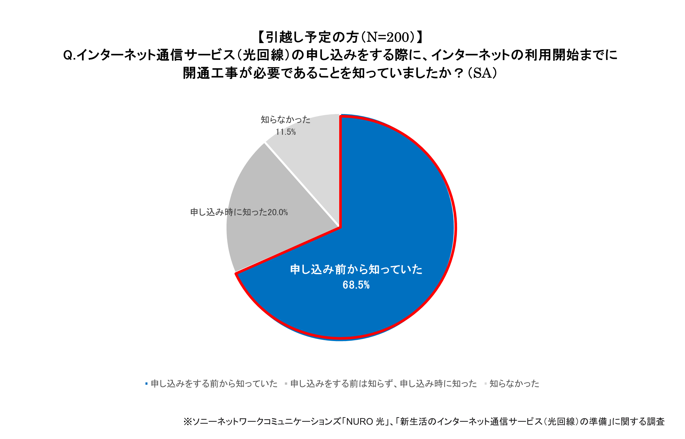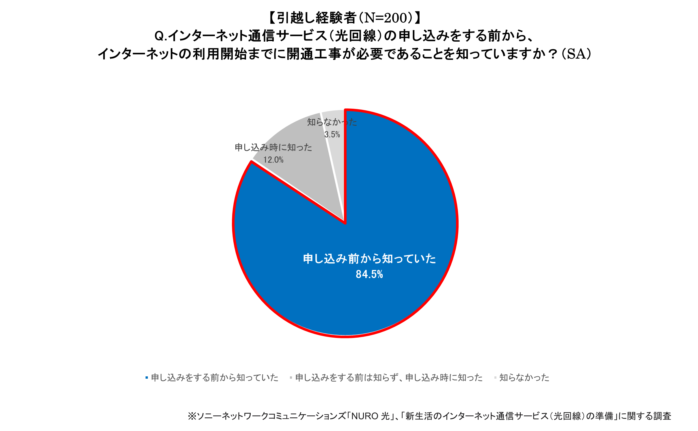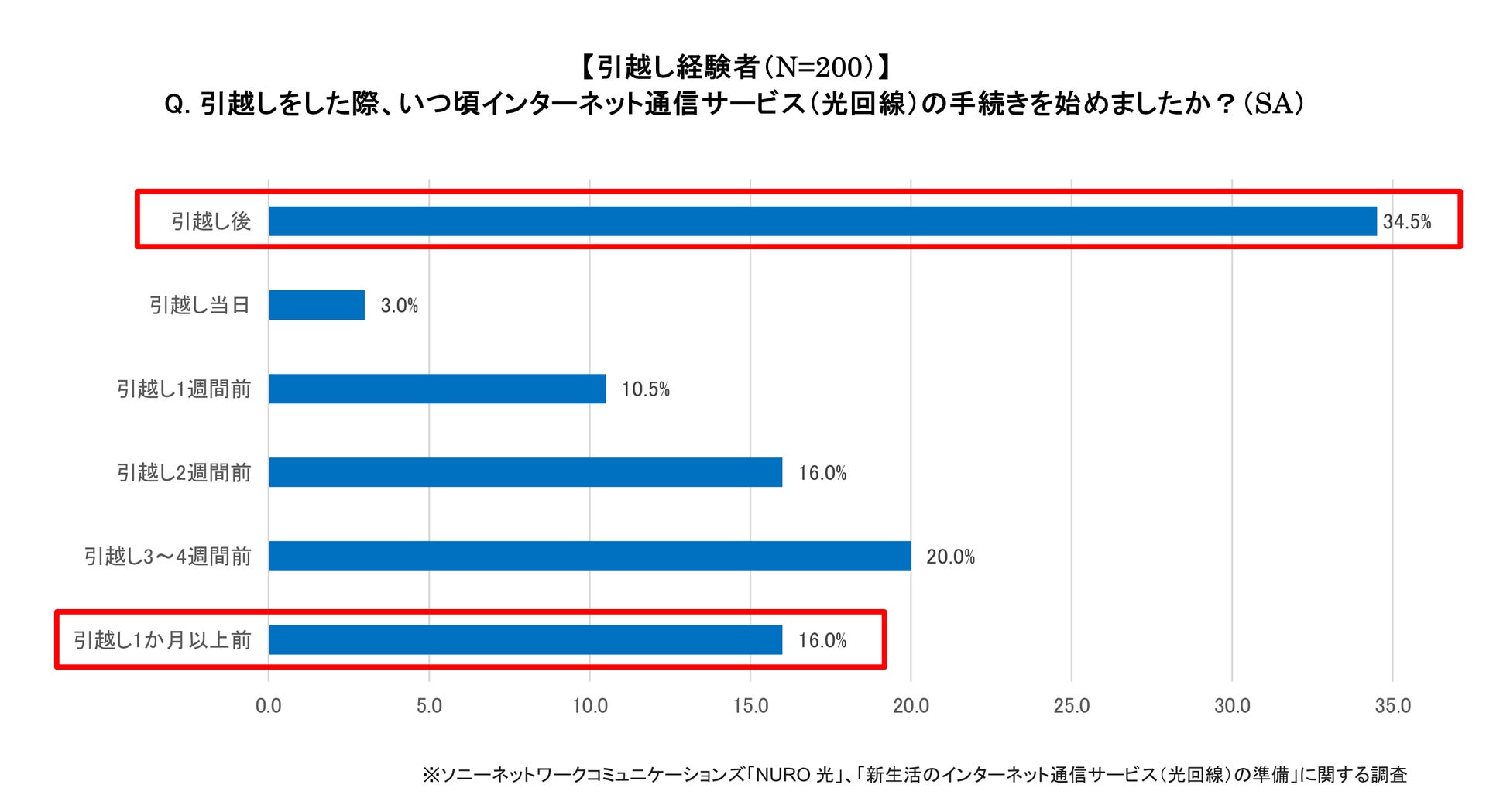 ソニーネットワークコミュニケーションズ株式会社が提供する、高速光回線サービス「NURO(ニューロ) 光」は、過去3年以内の引越し経験者と今年4月までに引越し予定の方を対象に、「インターネット通信サービス(光回線)の準備」についてインターネット調査を実施しました。