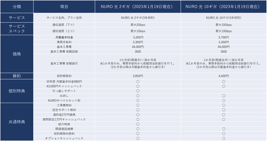 <「NURO 光」プラン内容>